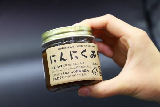 ■にんにくみそ:米(高知県産)、砂糖、にんにく、玉葱、酒、大豆、植物油、食塩