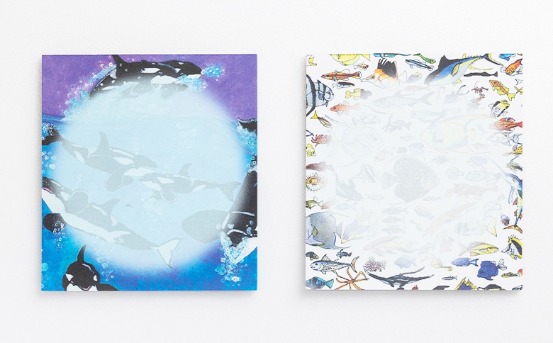 | 容量 | ■ぺたんこポーチ 13.5cm×20cm(マチなし) ■白イルカの巾着 15cm×12.5cm ■メモパット 10cm×10cm 35ページ×2冊(カリブ海の生き物、シャチの家族) |