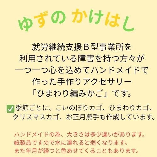一つ一つ心を込めて製作致します。 134005 手作り「ひまわり編みカゴ」