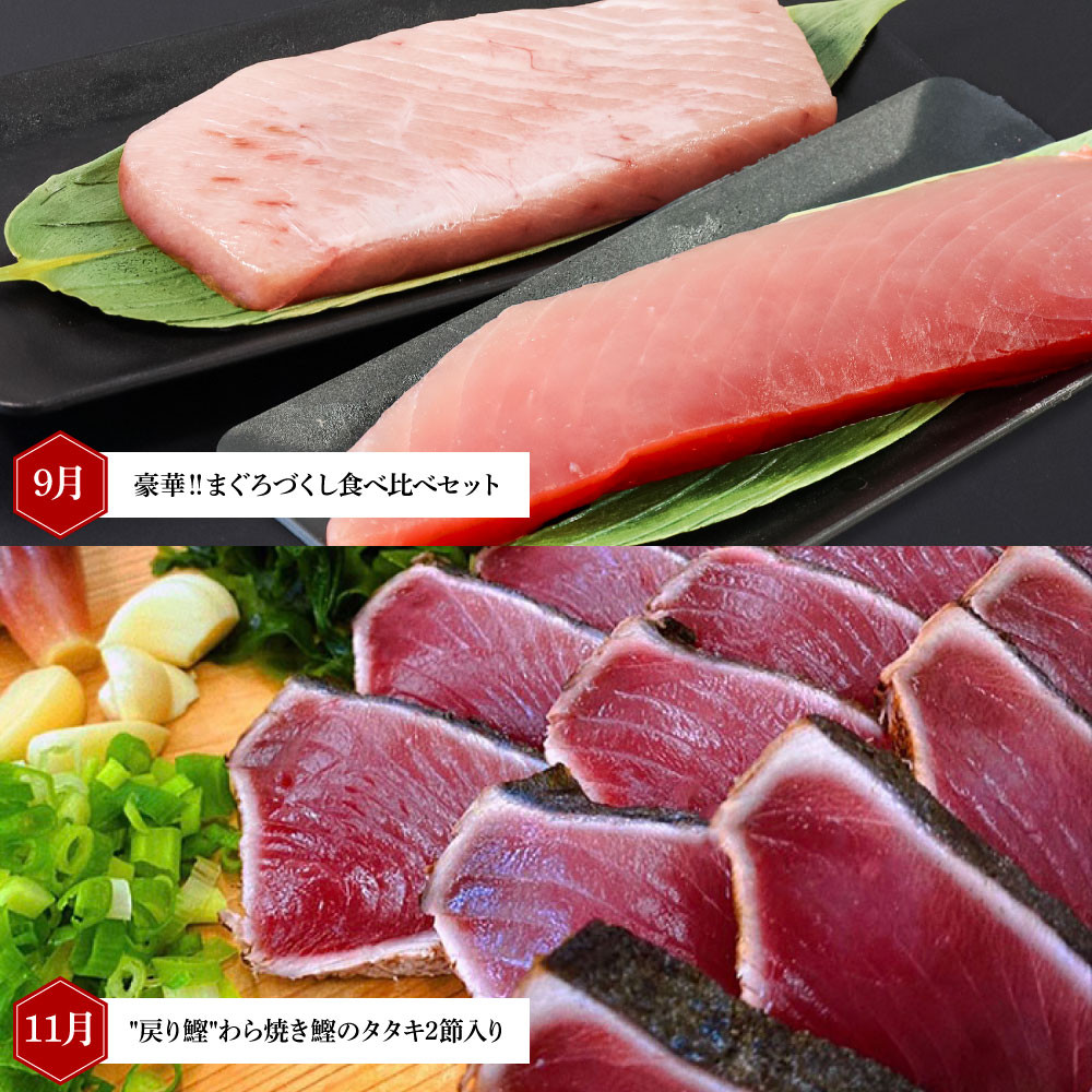 寄附の翌奇数月から6ヵ月隔月でお届けします。 例:3月に寄附→5月の"初鰹"わら焼き鰹のタタキ2節入り(冷蔵)から隔月で6ヶ月分お送りいたします。 |
