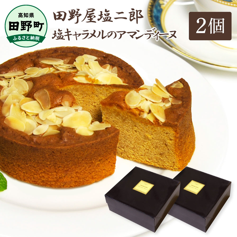 アーモンドの味わいが特徴のしっとりアマンディーヌです。 ★田野屋塩二郎完全天日塩★ 塩キャラメルのアマンディーヌ(ホール約12cm)×2ホール 田野屋塩二郎 天日塩 お菓子 洋菓子 ケーキ スイーツ アーモンド しっとり 美味しい