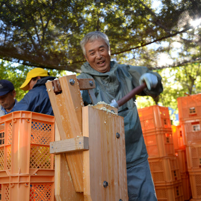 私達の村では、昔から各家庭では庭先や田んぼのふちにあるゆずの実をしぼって塩を入れ、一年間貯蔵し、祝いごとや集まりがある度に持寄って、ゆずのお寿司をつくってきました。