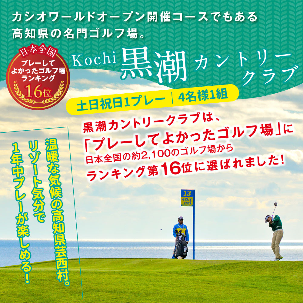 県内屈指の名門コースでのプレー・1泊朝食付(4名様分)のセット Kochi 黒潮カントリークラブ・土佐カントリークラブ 土日祝日各コース1プレー(計2プレー)&1泊朝食付きゴルフパック