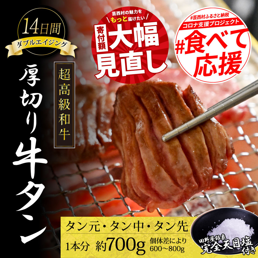 1965年創業 高知の繁盛焼肉店「天下味」監修 芸西村の本気牛タン 14日間ダブルエイジング〈ドライエイジング+塩熟成〉圧巻の超高級やわらか和牛牛タン(タン元・タン中・タン先1本分)銀象完全天日塩付き #食べて応援 #寄付額大幅見直し