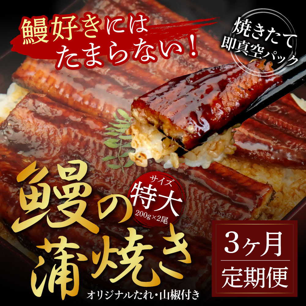 《3ヶ月定期便》“鰻好きにはたまらない”芸西村の人気鰻の蒲焼(特大)3ヶ月定期便(3回コース)