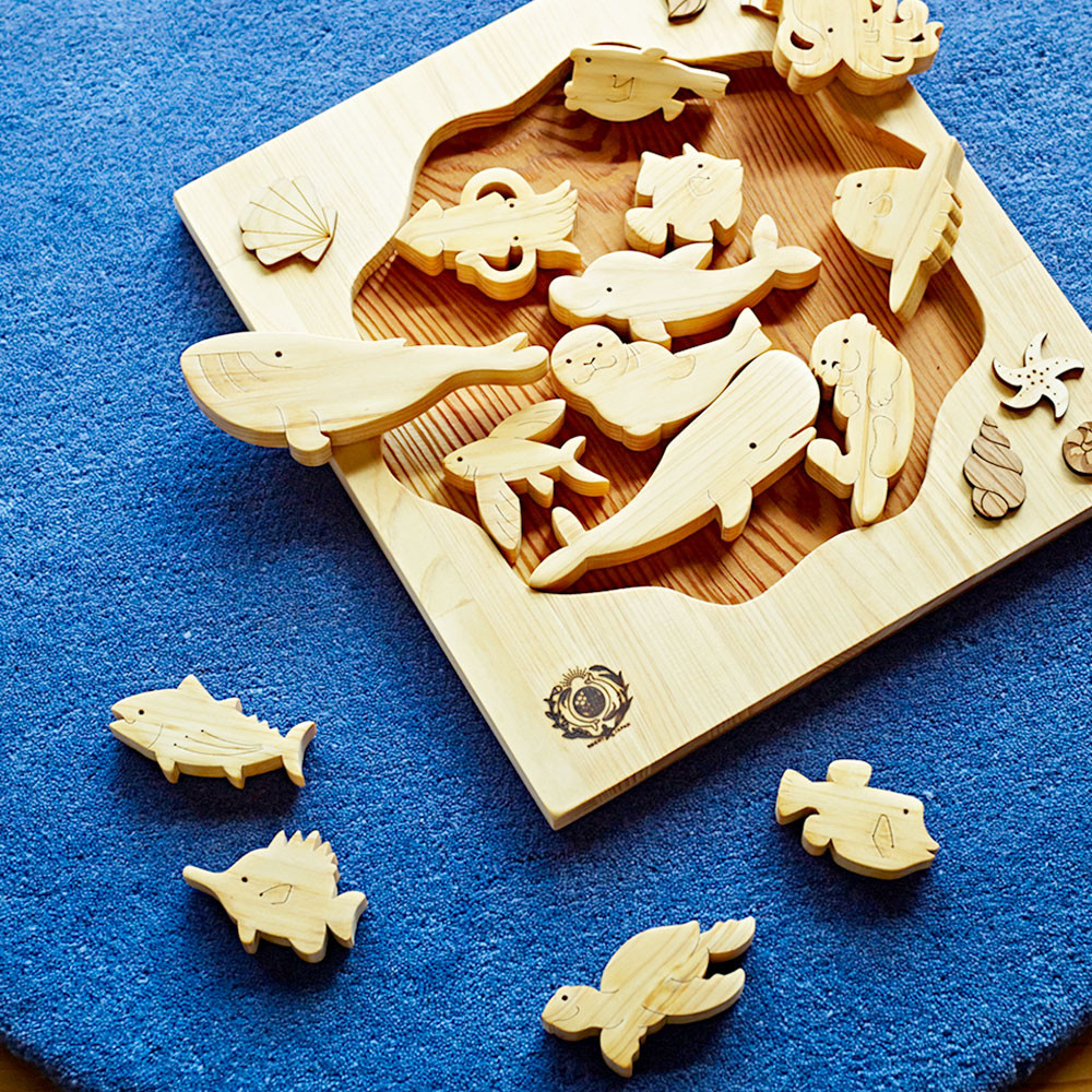 優しい木の香りと、心地よい肌触りをお楽しみください。 山のくじら舎 海パズル 木製 玩具 知育玩具 おもちゃ パズル 男の子 女の子 かわいい おしゃれ ギフト 包装 ラッピング プレゼント 贈り物 贈答 出産祝い 誕生日祝い のし 熨斗対応 高知県産