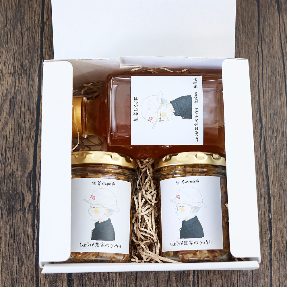 生姜シロップ・生姜の佃煮 詰め合わせセット 生姜シロップ×1本 生姜の佃煮×2個 ショウガ しょうが 佃煮 ジンジャー ジンジャーエール 生姜湯 料理 ごはんのお供 ギフト プレゼント