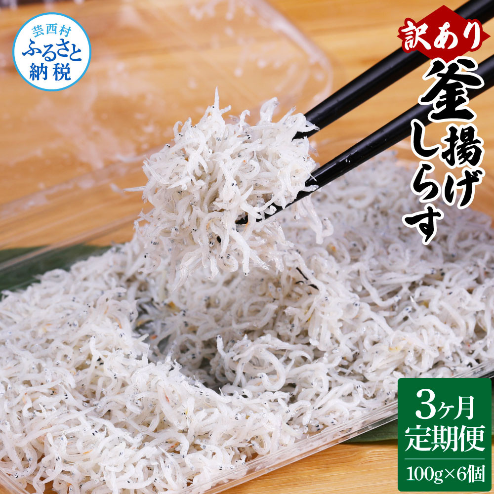 <3ヶ月定期便>訳あり 釜揚げシラス 100g×6個 定期便 定期コース 3ヶ月 しらす シラス 釜揚げ 新鮮 塩分控えめ 離乳食 わけあり ワケあり 不揃い しらす丼 海鮮丼 お茶漬け