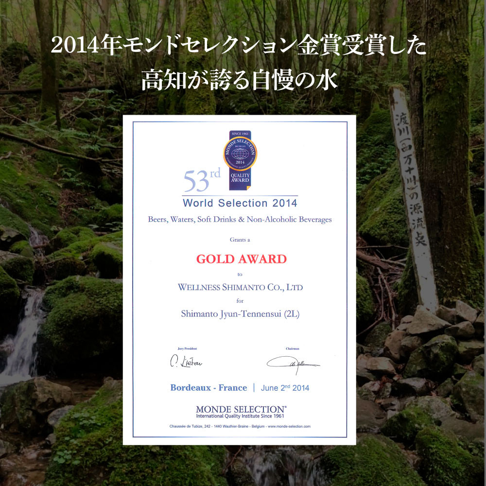 日本最後の清流とも呼ばれ、名水百選にも選ばれる「四万十川」、その源流域より採水された「四万十の純天然水」。2014年モンドセレクション金賞受賞した、高知が誇る自慢の水です。