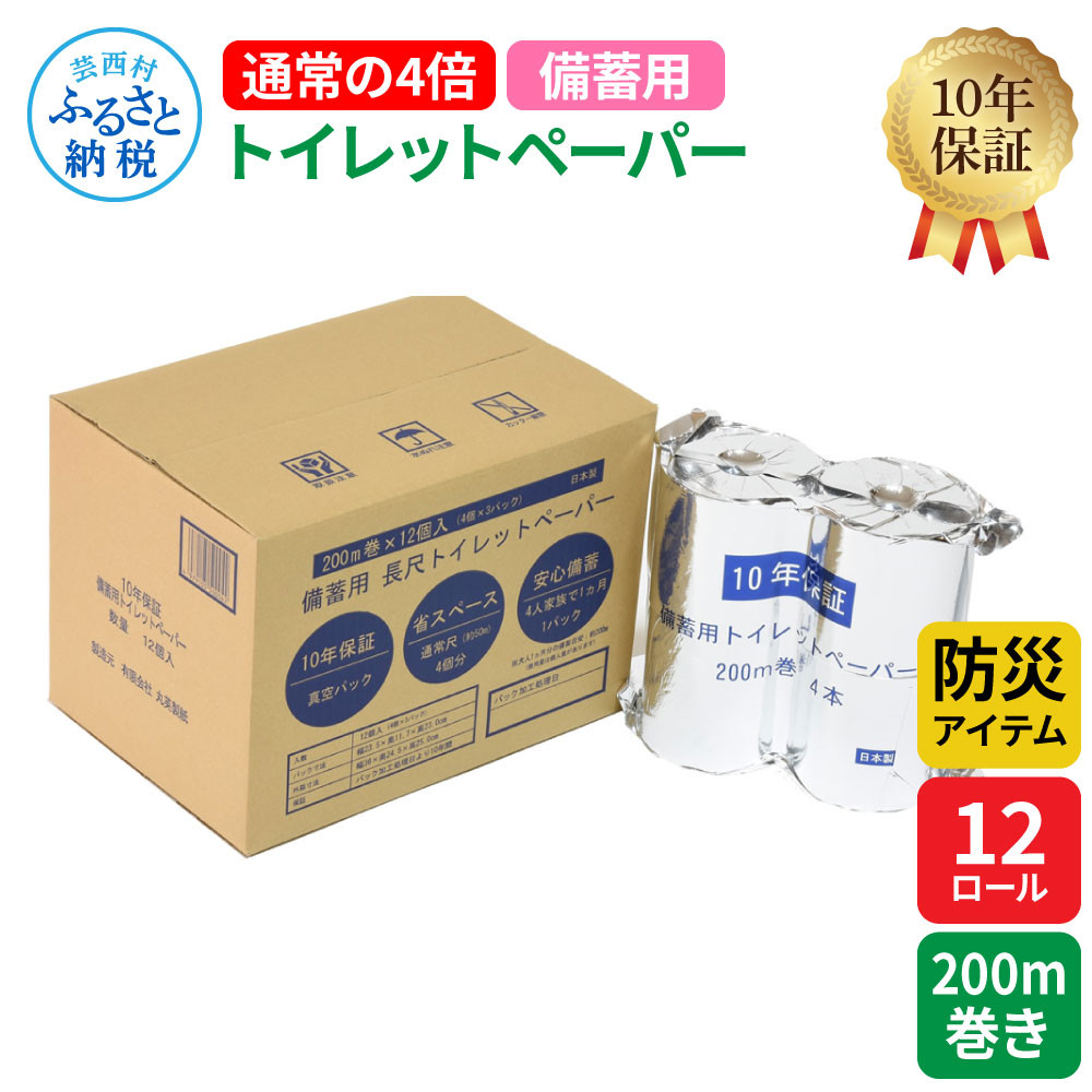 世界初!10年間保存ができるトイレットペーパー 【防災アイテム】【10年保証!】 備蓄用トイレットペーパー 通常の4倍!200m巻き 12ロール【4ロール×3パック】 再生紙 リサイクル パルプ100% ソフトタイプ 防災 災害 日用品 高知