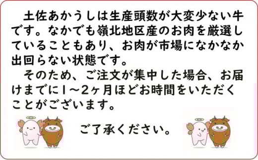 「土佐あかうし」とは高知県内でしか改良されていない褐毛和牛の通称です。土佐あかうしの年間出荷量は約470頭。これは和牛生産量の0.1%しかありません。(平成30年度 高知県畜産振興課調べ)そのため、市場にもなかなか出回らない希少なお肉です。