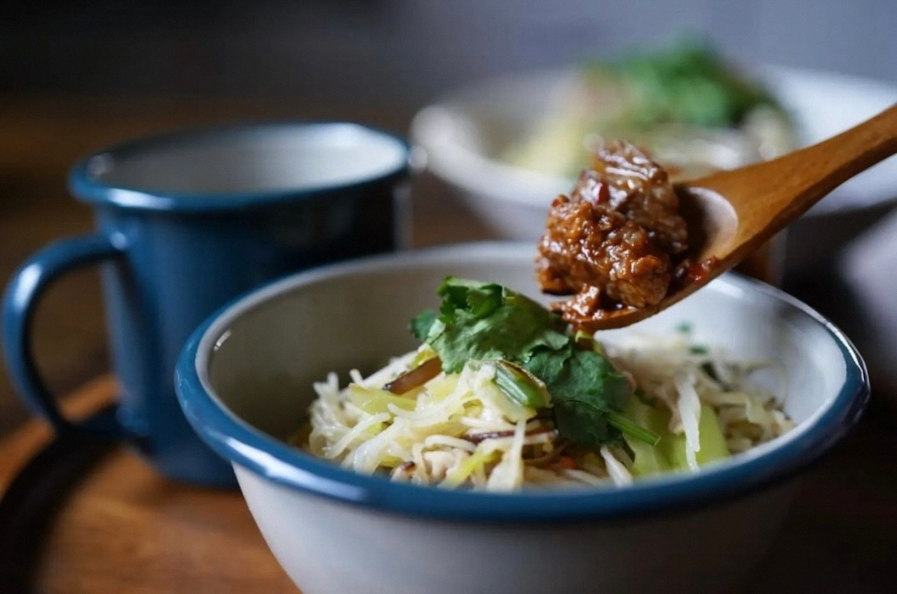 嶺北地域の特産品、土佐あかうしをゴロっと贅沢に使用した食べるラー油。