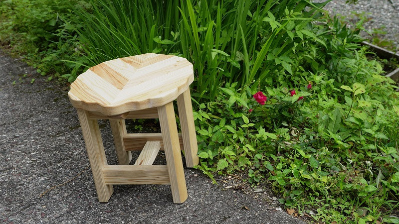 スギ材を使った、一つ一つ職人が最初から最後まで手作りして仕上げている、ハンドメイドのイス(スツール)です。