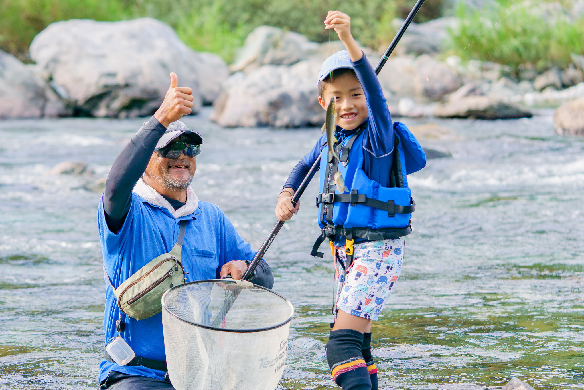 手ぶらでOK!プロの鮎釣り師がご案内する仁淀川で鮎釣り体験!自然を満喫☆ 【親子で釣り体験】仁淀川で鮎の友釣り(ガイド付/大人・高校生以下各1名)