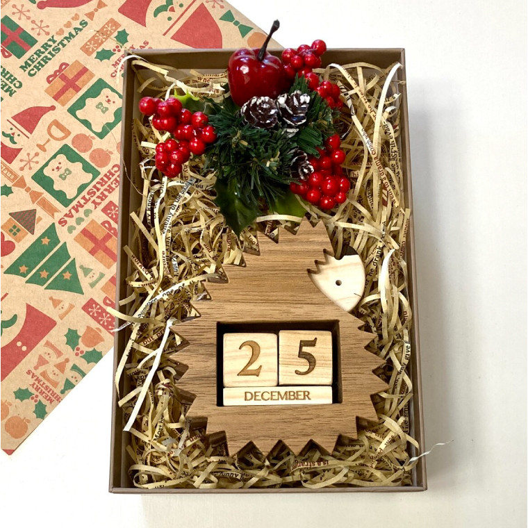 大人気【ハリネズミと暮らそう!】シリーズの「ハリネズミの万年カレンダー」に、華やかなクリスマスピックをお付けします♪