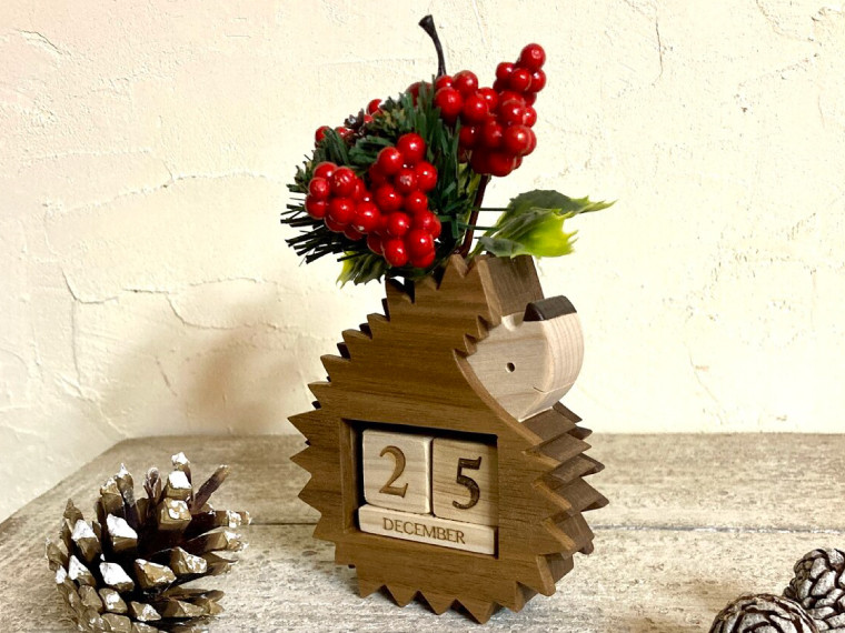 そう語る打木さんがデザイン・制作したのが、こちらの【ハリネズミの一輪挿し万年カレンダー】です。