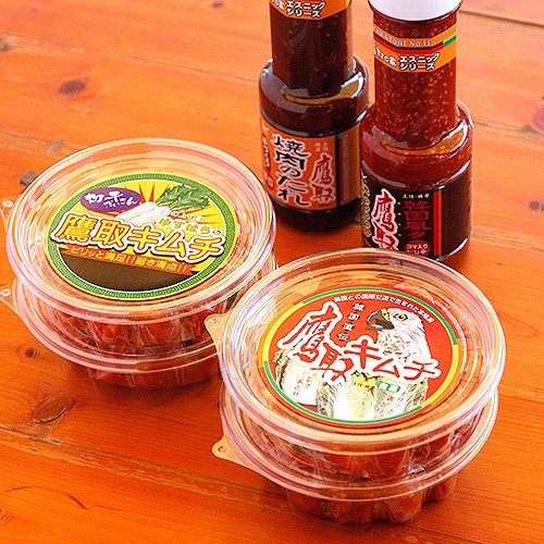 | 容量 | 鷹取キムチ(白菜)2個 鷹取キムチ(大根)1個 雲の上のキムチ 1個 鷹取ドレッシング 1本 鷹取焼肉のたれ |