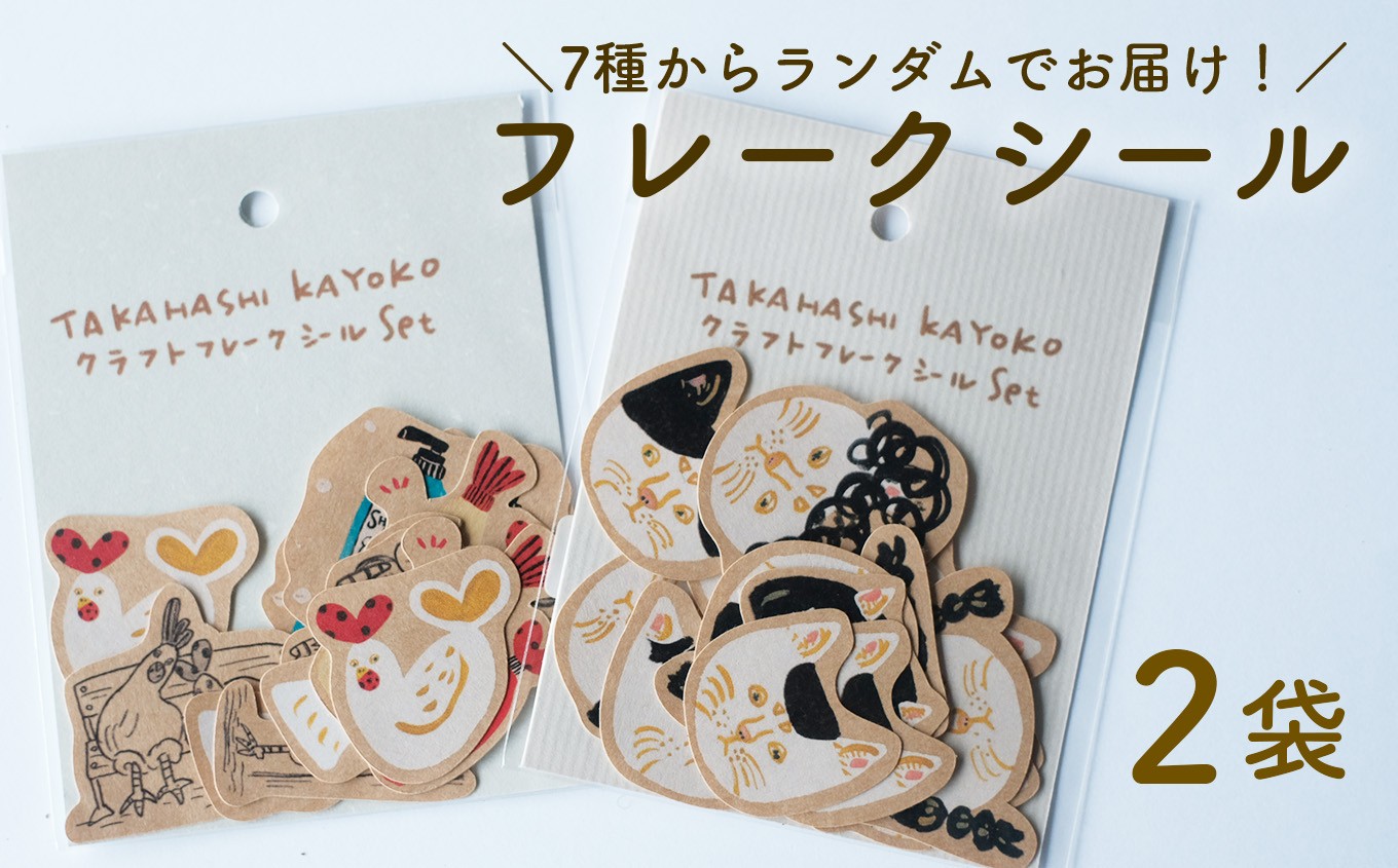 「紙博」でも大人気! クラフト フレークシール 日高村の作家・タカハシカヨコ ランダム 文房具 手帳 ギフト 2袋セット