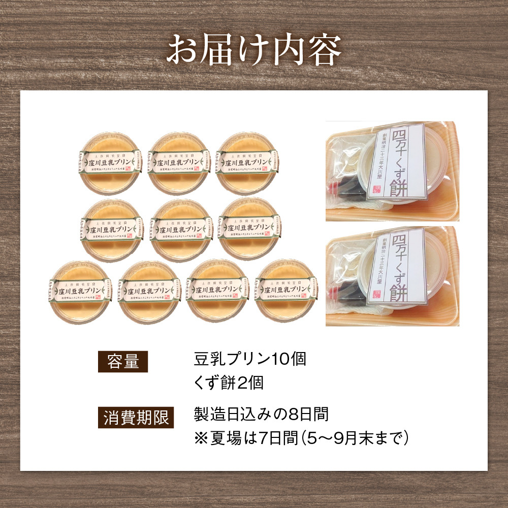 | 容量 | 豆乳プリン10個 くず餅2個 |