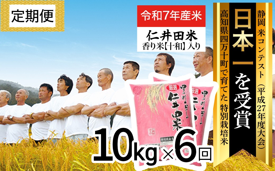 高知県四万十町で育てた特別栽培米! 【令和7年産米】四万十育ちの美味しい仁井田米(香り米入り)定期便【10kg×6回】 仁井田米 お米 新米 米 こめ コメ 農家 こだわり おこめ ブランド米 米処 特別栽培米 ブレンド米 /Sbmu-D15