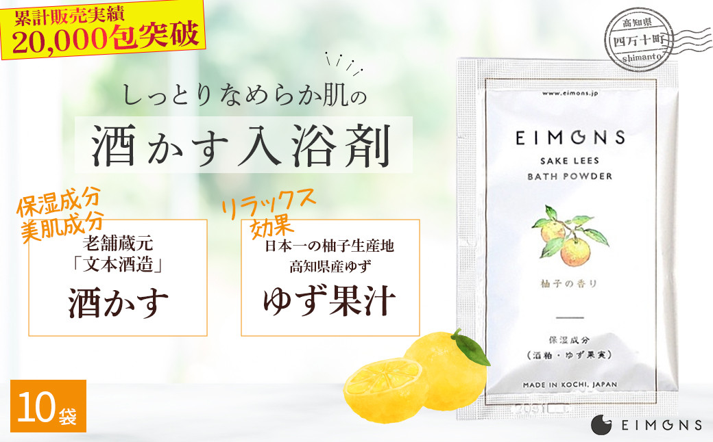心地よいユズの香りと共に、しっとりなめらかなお肌のうるおいを感じてください 乾燥肌の方にオススメ!保湿力の高い酒かす入浴剤(柚子の香り) 10袋 Oem-13 ほしつ 疲労 回復 お風呂 日用品 バス用品