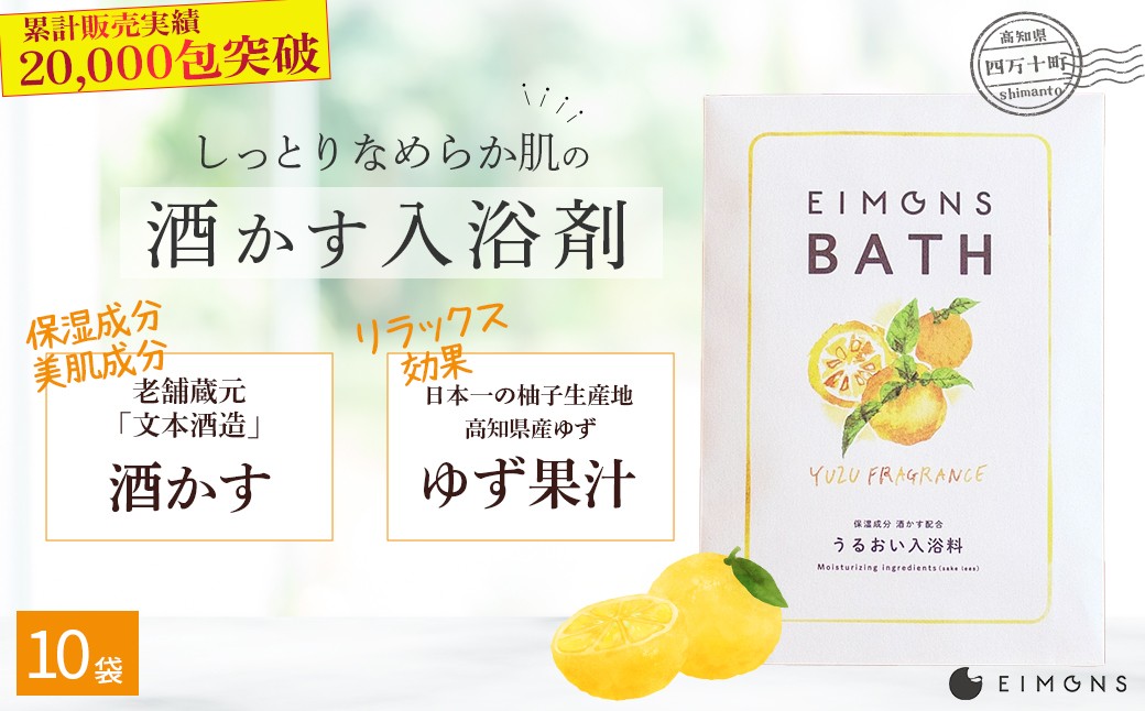 心地よいユズの香りと共に、しっとりなめらかなお肌のうるおいを感じてください 乾燥肌の方にオススメ!保湿力の高い酒かす入浴剤(柚子の香り) 10袋 Oem-13 ほしつ 疲労 回復 お風呂 日用品 バス用品