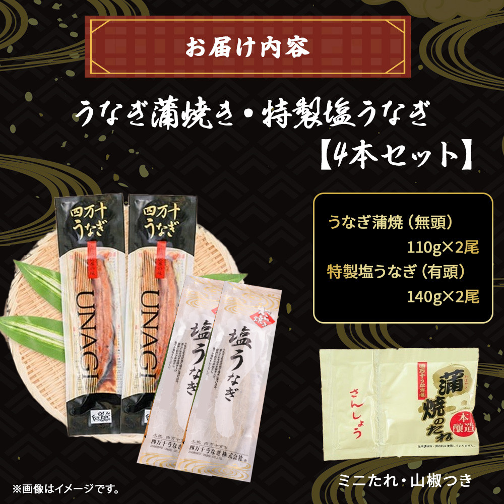 うなぎ蒲焼き・特製塩うなぎ4本セット