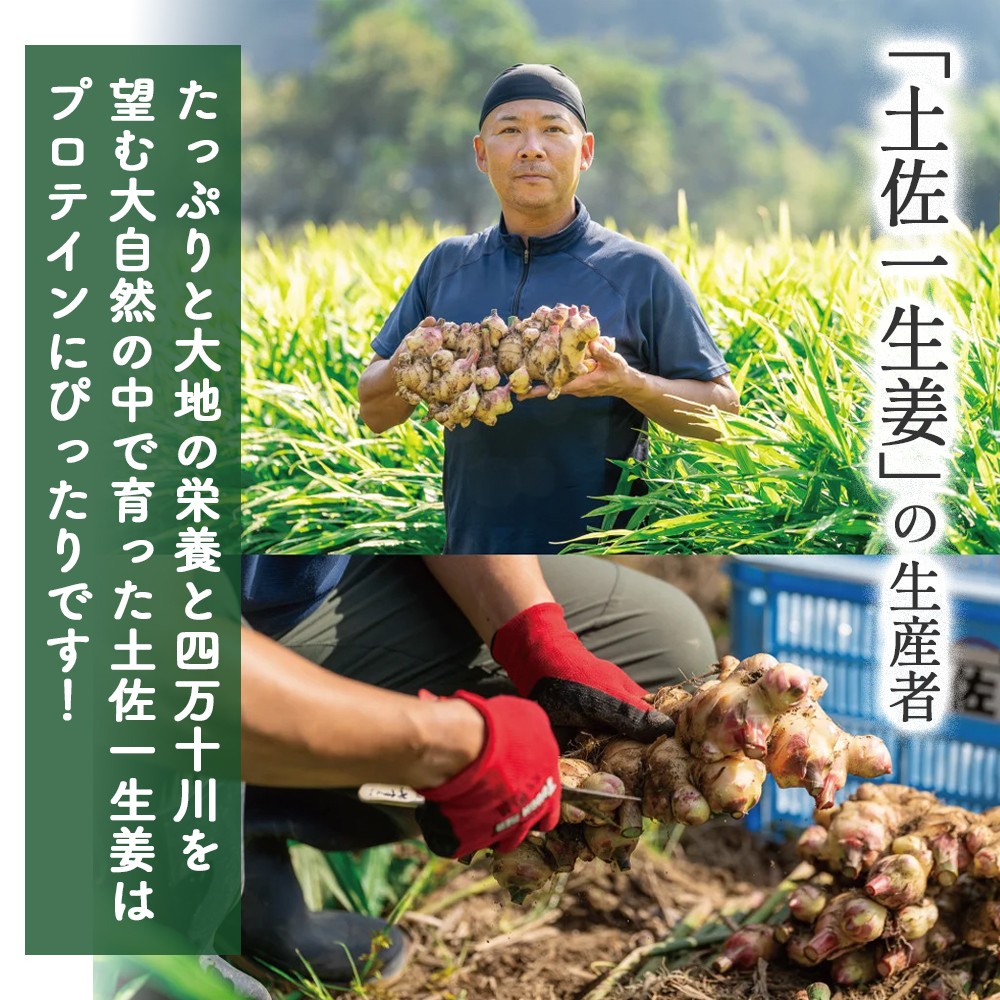 四万十町で育った土佐一生姜のパワーがしっかり感じられ、身体の底からポカポカして元気になれるプロテインです。