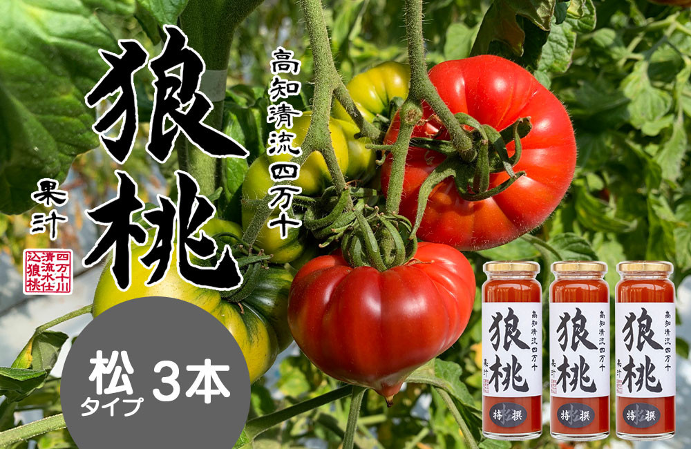 【無塩・無添加】最高級トマトジュース!四万十育ち「狼桃果汁」 糖度12度以上 松タイプ3本 Fdf-A01 /フルーツトマト しまんと 高知 贈答 ギフト プレゼント 贈り物 御年賀 お歳暮 お中元 お取り寄せ 熨斗 料理 カクテル