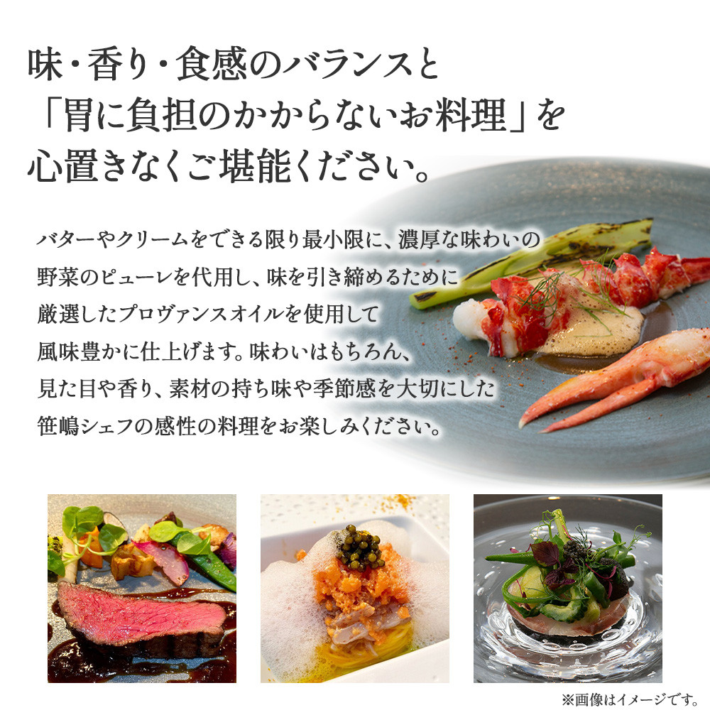 特産品ランチ・ディナー共通コース (1)返礼品を選んで寄附 寄附を確認し次第チケットは発行いたします。 ------------------------------------ (2)チケット送付 登録番号が記載されたチケットが手元に届きます。 ------------------------------------ (3)お店へ電話予約 お店へ電話予約をしてください。ご予約の際には必ずチケット情報に記載のコース名をお伝えください。 ------------------------------------ (4)予約日当日にお食事 予約したお店にて一流料理人によるお食事をお楽しみください。当日ご持参いただくものはありません。ドリンクなどの追加注文がある場合は、現地でご精算ください。 コース内容 メニューはすべて一例です。時期により食材、料理は変わる場合があります。 詳細は事前に店舗へご確認ください。 ミシュランも獲得する笹嶋シェフによる、四万十町食材とのハーモニー。 * [1:前菜] 麦味噌のタルトレットと黒オリーブのフリット [2:アミューズ] 本日のアミューズ [3:スープ] 活けオマール海老とビーツの冷製ボルシチ仕立て [4:グリエ] 四万十町産銀不老豆と原木椎茸のテリーヌ黒アワビのグリエ [5:リゾット] 四万十ウナギとフォアグラ 焼き肝のリゾット [6:魚] 天然鮮魚のシェフのインスピレーション [7:肉] 塩麹でマリネした池田牛のロースト [8:デザート] 和栗のモンブラン仕立てビターチョコレートのソルベ [9:食後] 小菓子/コーヒー/パン ※写真はイメージです。 ※仕入状況等により事前の告知なしでコース内容は変更となる場合がございます。 【関連ワード】 ミシュラン 食事チケット 食事券 レストラン チケット ランチ ディナー 利用券 ギフト 贈り物 贈答 父の日 母の日 誕生日