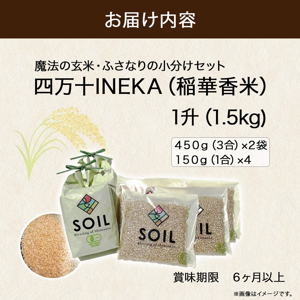 魔法の玄米・ふさなりの小分けセット、ご自身の味見やプレゼントにも使えます! 【有機玄米】希少な四万十の香る米 1升(1.5kg)セット 四万十INEKA(稲華香米) /Fsg-05 小分け 便利 ブランド米 お米 米 香米 香る米 玄米 旧米 令和6年度産米 高知県 四万十町