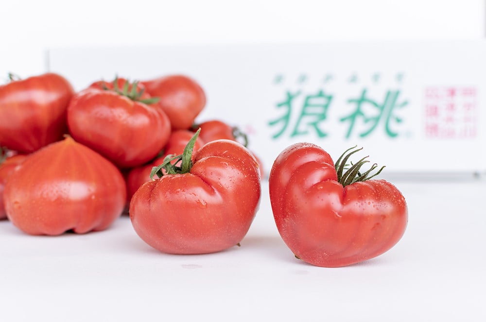 朝、昼、晩と寒暖の差が激しいこの地域でつくられた、酸味と旨味、高い糖度を蓄えた、野生派トマト「狼桃」。