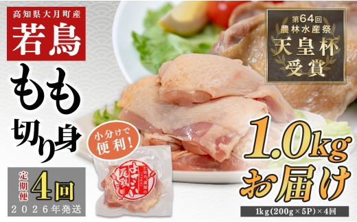 徹底した衛生管理のもとで育てられた、大月町の新しいブランド鶏「よさこい尾鶏」のバラエティーセット(もも肉1kg、もも角切り900g、むね肉1kg前後、ささみ1.1kg)を2ヶ月に一度、計6回お届けします。
