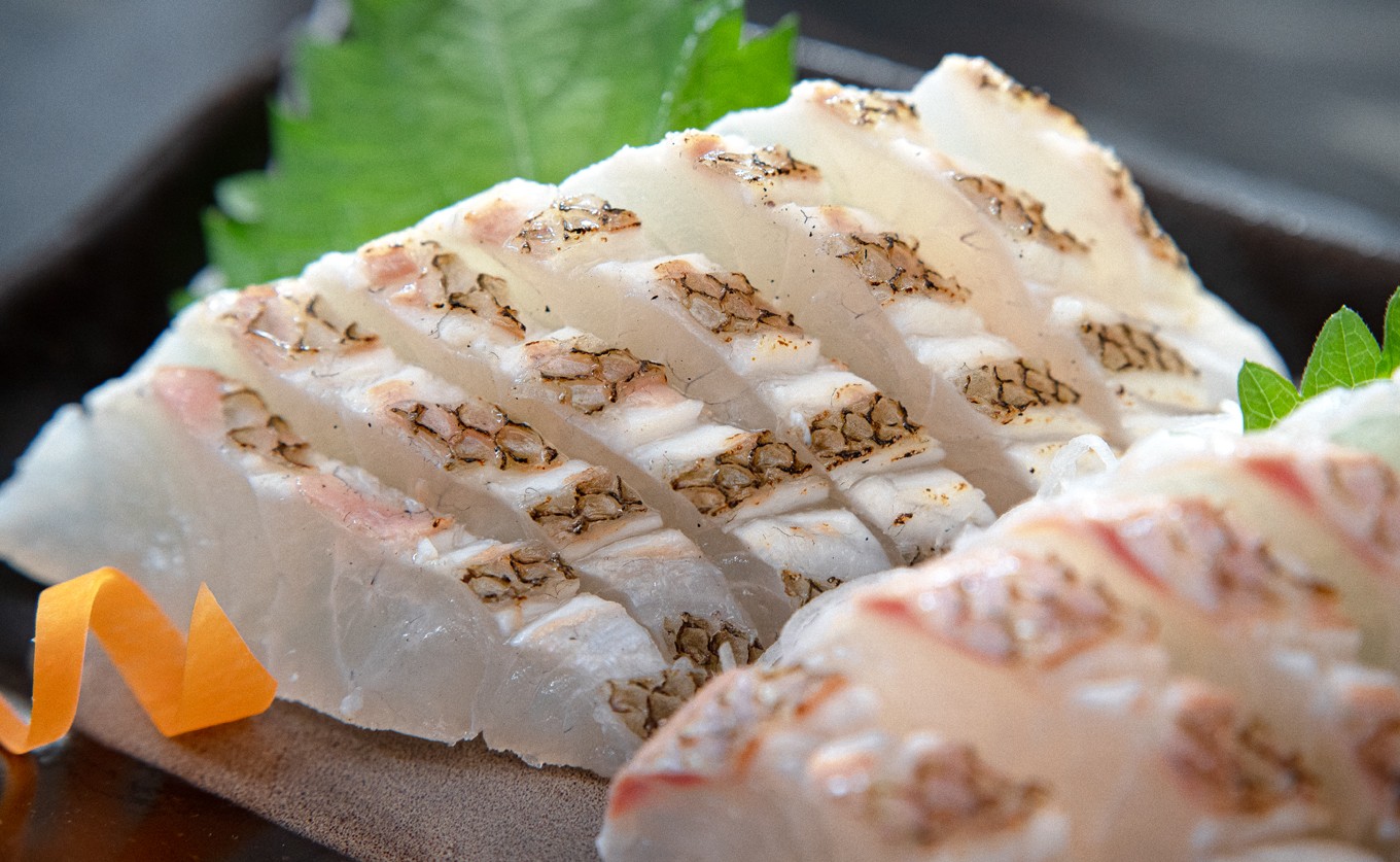皮付きにしているので、湯引きや炙りの刺身・塩焼き・煮つけ・バター焼き・アクアパッツァ・ポワレ等におすすめ。