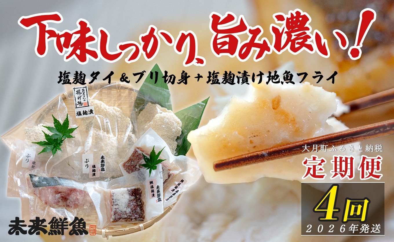 味付け不要!塩麹が引き出す新鮮なお魚のうまみ。人気の3種詰め合わせ。 【定期便4回】塩麹に漬け込んだタイ&ブリ&地魚フライ|高知県産 白身魚 鯛 魚 たい 鰤 ぶり 揚げ物 麹 米麹 塩こうじ 天日塩 おすすめ 新鮮 魚介 海鮮 ビール おつまみ ご飯 お米 おかず 冷凍 便利 時短 お取り寄せ 贈答 ギフト 国産