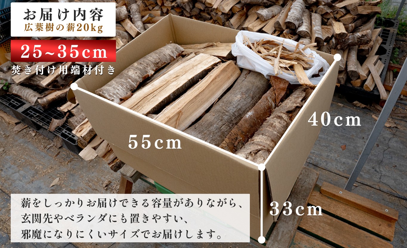 広葉樹 薪 20kg 乾燥薪 広葉樹MIX薪 焚き火 薪ストーブ キャンプ クヌギ ナラ カシ シイ 25cm 30cm 35cm 端材付き 焚き付け アウトドア 家庭用 暖房 火持ち 含水率20%以下 [91_0435]