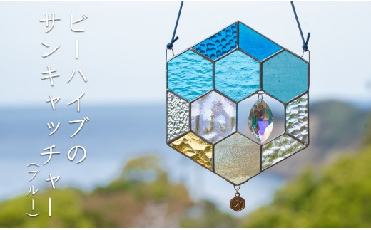 ステンドグラス 蜂の巣 モチーフ (ブルー) サンキャッチャー 手…