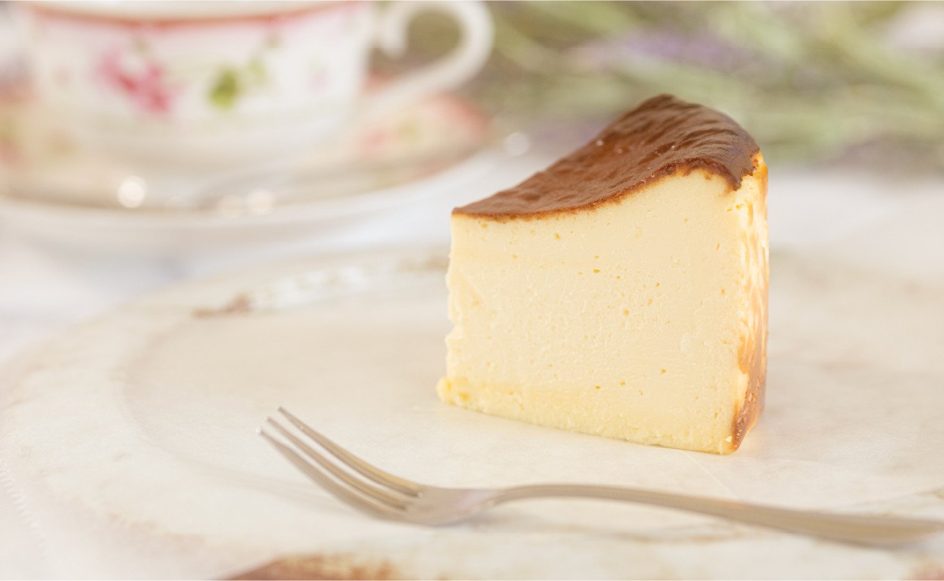 オリジナルの『バスクチーズケーキ』の美味しさはそのままに、表面はこんがり焼き上げ、中はとろっとクリーミーに仕上がっています。
