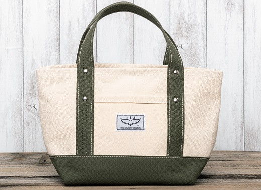 帆布 トートバッグ 〔小〕ホワイト × オリーブ isa IB008[1564]