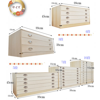 国内有数の家具産地である福岡県大川市。長年桐たんすのみを制作してきた特別工場より桐箪笥職人の手作りにてお届けいたします。着物用や衣類収納用の他、桐の特性を生かして雛人形を収納したりと、使い用途は様々です。燃えにくいのも特徴で長く保つ上に安全面でも考慮した桐の和箪笥です。