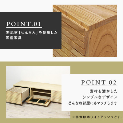 天然木・無垢材を使用し、前板にスリットの入った人気あるデザインを採用したテレビボードです。