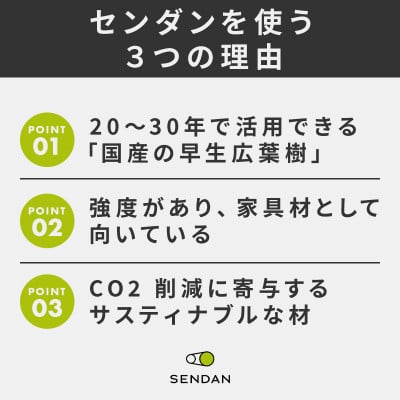 SENDANは、大川家具工業会地域材開発部会が取り組む、サスティナブルな木材であるセンダンを活用したライフスタイルを提案するブランドです。