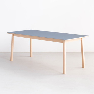 ヨーロッパ産の発色の良いリノリウムを天板に採用し、フレームには北米産のオーク無垢材を使用しています。