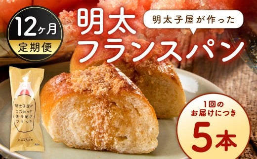 【12カ月定期便】 明太子屋がこだわった明太フランス 5本セット…