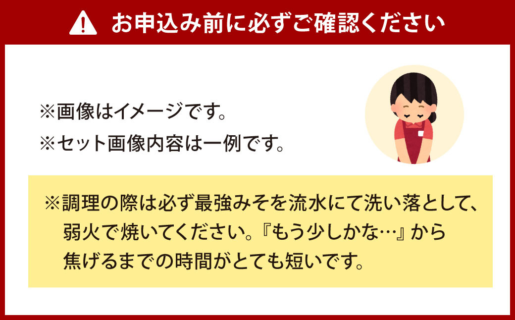 調理の際は必ず最強みそを流水にて洗い落として、弱火で焼いてください。
