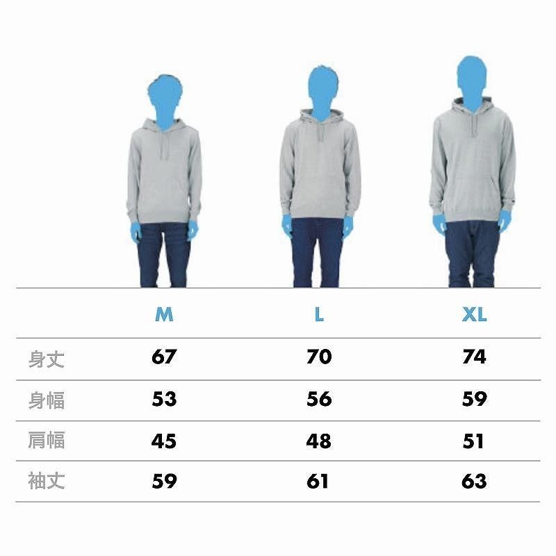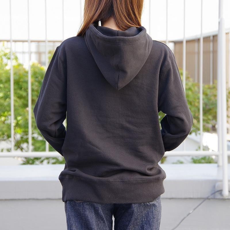 上からジャケットを羽織ってインナーにも使用できるパーカーです。若干細めのシルエットのため、普段よりワンサイズアップをオススメします。