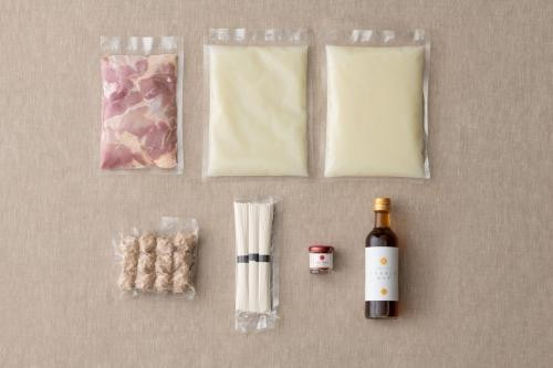 良質な肉質で知られる九州産銘柄鶏「華味鳥」と新鮮な鶏ガラを7~8時間かけて煮込んでとったコラーゲンたっぷりの白湯スープ、特製の橙ぽん酢と自家製柚子胡椒をセットにいたしました。