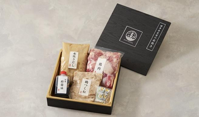 | 容量 | 水炊きだし(260g)、骨付きもも(280g)、つくね(100g)、特製酢醤油(90g)、柚子胡椒(2袋) 【原材料名】 国産鶏肉、酢醤油(醤油、米酢、発酵調味料/調味料(アミノ酸等)カラメル色素、甘味料(甘草)、(一部に小麦・大豆を含む)、チキンエキス(国内製造)、食塩、デキストリン、チキンエキス、食用油脂、野菜エキス(オニオンエキス、キャベツエキス、にんじんエキス)、蛋白加水分解物、香辛料、酵母エキス、pH調整剤、ブドウ糖、小麦タンパク、米、アルコール(一部に鶏肉を含む)、つくね(国産鶏肉、卵、生姜、ニンニク、有機大豆、食塩、葱、馬鈴薯でん粉、とうもろこし澱粉(遺伝子組み換えでない)、唐辛子、柚子 |