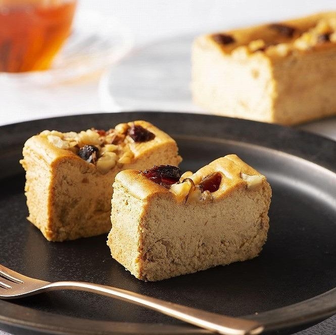 厳選したクリームチーズとデーツを使用し、じっくり、しっとり焼き上げております。クルミの香ばしさがアクセントとなり後を引く美味しさです。