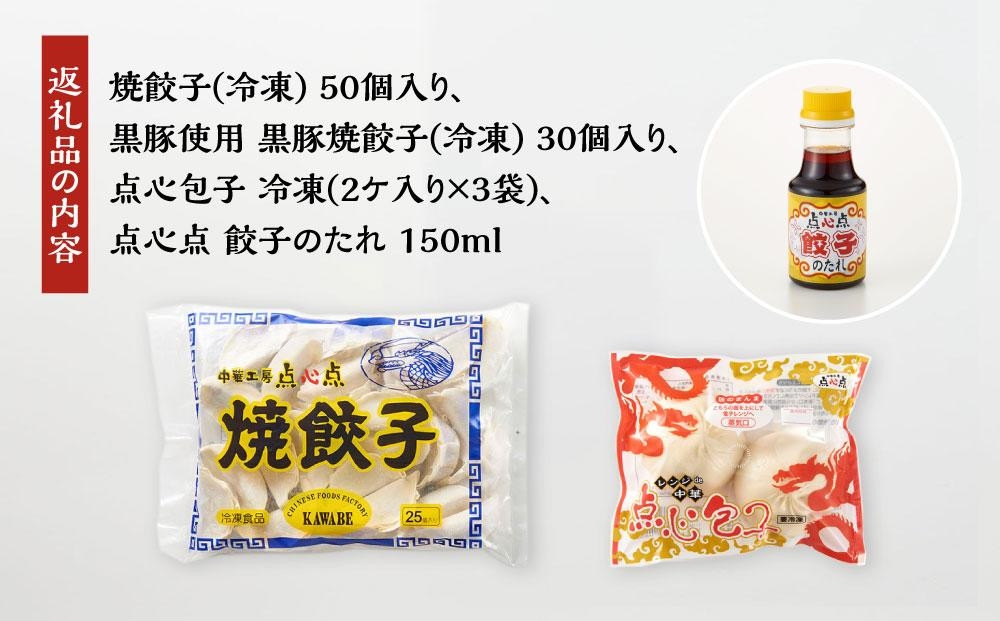 【博多のおみやげ 中華工房 点心点】博多一口餃子、黒豚焼餃子、点心包子、特製 餃子のタレ付き